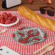 Plato De Papel Crustáceo en rojo, negro y marfil