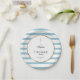 Simple plato de papel de franja azul bebé para bautizo o bautismo con una cruz dorada con un borde de lámina dorada falso elegante que enmarca los detalles de su evento de celebración especial en tipografía moderna. Diseñado por Thisisnotme©