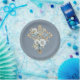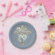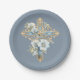 Plato De Papel Cruz Floral Azul Primera Santa Comunión