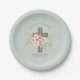 Plato De Papel Cruz floral de dedicción de BEBÉ personalizada