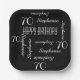 ELIJA SU COLOR y cree su propio elegante plato de papel personalizado para una fiesta de cumpleaños número 70 o cualquier otra ocasión. El nombre y la edad se repiten en blanco. Este estilo tiene un fondo negro por defecto, pero puede seleccionar fácilmente un color de fondo diferente. ¡Eres el diseñador! Fácil de personalizar: simplemente CAMBIAR NOMBRE, EDAD y OCASIÓN EN UN SOLO LUGAR. Admite un nombre de hasta 9 caracteres. Elija cuadrado o redondo. Un elegante, elegante y moderno plato de papel de la fiesta de cumpleaños. Las servilletas coincidentes están disponibles en mi tienda de zazzle, SocolikCardShop. Todos los derechos reservados © 2015 Alan & Marcia Socolik.