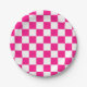 Cuadros de cuadros de cuadros de patrón retro geométrico blanco rosado caliente Placas de papel. Artículos de fiesta para ella. Patrón cuadrado geométrico retro de Guay. Baldosa de época blanca y damero moderno rosa caliente.