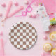 Plato De Papel Cuadrados de cheques mocha retro geométrico blanco