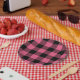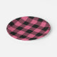 Plato De Papel Cuadrados de cuadros de búfalo rosa y negro a cuad
