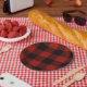 Plato De Papel Cuadrados Grandes Rojo y Negro a Cuadros Bufalo Pl