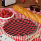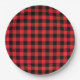 Plato De Papel Cuadros de Búfalo Navideños Negro Rojo