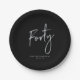 Este sencillo plato de papel personalizado le dará un toque elegante al moderno cumpleaños 40. Este diseño presenta letras de moda plateada "Cuarenta" con texto personalizado. En mi tienda BaraBomDesign hay disponibles invitaciones y suministros para fiestas coincidentes.