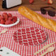 Plato De Papel Cuatrefoil blanco rojo