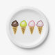 Una hilera de cuatro helados diferentes. Este diseño parece realmente efectivo en estas placas de papel
