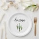 Placa de papel del suroeste del desierto, con un diseño de cactus de saguaro verde sobre un fondo blanco. Con letras de tipografía de personalizable negro, puede agregar su propio texto. Ideal para añadir un toque de Arizona a sus accesorios fiestas.