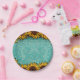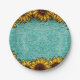 Plato De Papel Cuero turquesa con girasoles brillantes y soleados