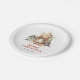 Estos acogedores y rústicos platos de papel vacacional presentan un ilustracion acuarela de un lindo oso marrón vestido con ropa de invierno. Las palabras "MERRY CHRISTMAS" aparecen en letras de serif rojas que se coordinan con el arte. Añada el nombre de su familia en cursiva gris carbón.