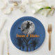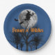 Escandalosa y elegante bruja voladora con su gato de papel de la fiesta de Halloween. El texto se puede personalizar. Toallas: https://www.zazzle.com/z/qgxxvi7v?rf=238828267405258083