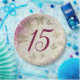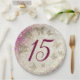 Mariposas doradas elegantes en combinación con fondo de brillo rosa ombre. Plato de papel elegante y adorable para fiesta de cumpleaños número 15. Puedes cambiar fácilmente el número de cumpleaños.