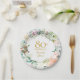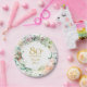 Con una delicada guirnalda floral de acuarela, este elegante plato de papel para el cumpleaños 80 con temática botánica se puede personalizar con la información de su cumpleaños ochenta en elegante texto dorado. Diseñado por Thisisnotme©