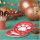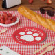 Estas placas de papel exhiben una impresión blanca de la pata en un fondo rojo con el texto de su opción. Son grandes para la impresión de la pata temática, el perro temático, el gato temático, o las fiestas de cumpleaños temáticas animales.
