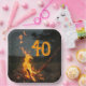 Platos de papel para fiesta de cumpleaños con hoguera y plantilla de edad. Celebre un hito con una reunión al aire libre alrededor de la fogata del patio trasero. Incluya su edad en naranja oscuro o elimine los números. Los platos vienen en forma redonda o cuadrada, en dos tamaños.