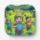 Cute platos de papel personalizados para fiestas de cumpleaños de niños con temática de golf en disco.