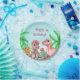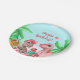 Platos fiestas de dinosaurios brillantes y juguetones con dinos rosas, naranjas y marrones rodeados de hojas y flores tropicales. Una manera divertida de llevar un tema prehistórico a la celebración del cumpleaños de su chica, a la vez que se combina perfectamente con la coordinación de las servilletas de dinosaurio, las bolsas de favores y la decoración fiesta.