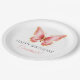 Celebra un cumpleaños con suave elegancia utilizando estos platos de papel de mariposas personalizados. Con una delicada mariposa en acuarela rosa y un nombre personalizado, este diseño añade un toque elegante y caprichoso a tu mesa de fiesta.