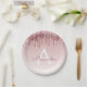 Platos de fiesta de soltera o cumpleaños elegantes de color rosa claro con destellos y brillo de rosa y oro. Estos platos de boda, fiesta de despedida de soltera o cumpleaños se pueden personalizar para incluir tu inicial y nombre. Por favor, contacta al diseñador para artículos personalizados a juego.