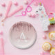 Plato De Papel Cumpleaños de monograma con brillo y destellos de
