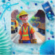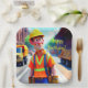 Estas placas de papel muestran a un feliz trabajador de la construcción trabajando.