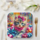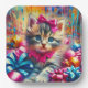 Plato De Papel Cumpleaños de un Chica Gatito Azul y Rosa