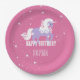 Plato De Papel Cumpleaños de Unicornio Pink Purple