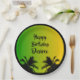 Empieza tu fiesta jamaiquino con estos platos fiestas de color bandera jamaiquina. El diseño tiene un fondo verde y amarillo que se desvanece, con palmeras negras en el fondo. Todo el texto es personalizable