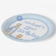 Plato De Papel Cumpleaños del conejo azul lindo 2do segundo