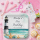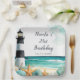 Bonito plato de fiesta de cumpleaños con un faro náutico en blanco y negro, una estrella y conchas. Ideal para una fiesta de cumpleaños. Las palabras se pueden cambiar para adaptarlas a sus propios detalles o requisitos