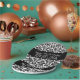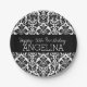 Plato De Papel Cumpleaños feliz con Damasco blanco y negro de mod