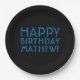 Plato De Papel Cumpleaños feliz (CUALQUIER NOMBRE) | Azul y negro