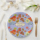 Plato de fiesta de cumpleaños de flor de amapola islandesa naranja amarillo púrpura, con un nombre totalmente personalizable. Diseñado a partir de mis acuarelas originales.