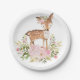 Plato De Papel Cumpleaños floral del bosque del arbolado del rosa