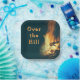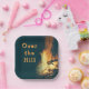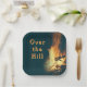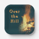 Platos de papel sobre la colina con un diseño de fuego ardiente. Perfecto para una celebración de cumpleaños al aire libre alrededor del fuego. Personalice el texto con su nombre, edad o use "sobre la colina". Color oscuro con texto naranja junto a una imagen de fogata. Elija platos redondos o cuadrados en dos tamaños.