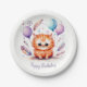Plato De Papel Cumpleaños Globos Gatito Rojo Acuarela Bonito