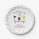¡Voltear, Tumble, Saltar y Jugar! Platos de fiesta de cumpleaños de gimnasia en tonos pastel rosa, violeta y azul.