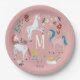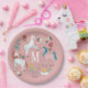 Plato De Papel Cumpleaños mágico de niñas rosa unicornio monogram