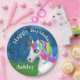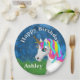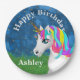 ¡Añada brillo a su mesa fiesta con estas mágicas placas de papel de cumpleaños de Unicornio! Diseñado con un bonito unicornio blanco y una cola y un mané de color arcoiris en audaces tonos rosa, violeta, turquesa y amarillo, el diseño se acentúa con un cuerno dorado brillante y chispas mágicas. ¡Ideal para la tarta de cumpleaños, los aperitivos y la diversión festiva! Arte original de Suki's - Copyright