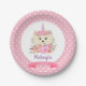 Plato De Papel Cumpleaños mítico del gato Girly Unicorn Caticorn