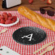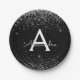 Plato De Papel Cumpleaños Monograma Brillo Negro Plateado