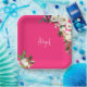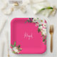 Plato De Papel Cumpleaños Nombre de Escritura Floral Rosa Brillan