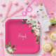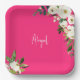 Plato De Papel Cumpleaños Nombre guión floral blanco rosa calient