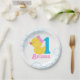Placas de papel de cumpleaños personalizadas del pato de goma Chica blanco, personaliza con tu nombre y edad! Disponible en redondo o cuadrado.