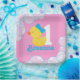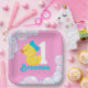 Plato De Papel Cumpleaños personalizado del Chica rosado del pato