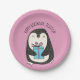 Con su adorable ilustracion de pingüino, estos platos de papel son perfectos para fiestas de cumpleaños para los aficionados a los pingüinos así como para fiestas de vacaciones. La presentación es un ilustracion de un adorable pingüino sosteniendo un regalo envuelto contra un fondo rosado. Utilice el campo plantilla para personalizar el mensaje en estas placas de papel.
