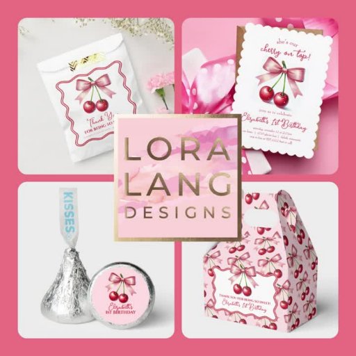 Girly Pink Coquette Cherry 1st Birthday CollectionDiseñado por Lora Langowski
