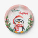 Plato De Papel Curioso Feliz Navidad Wreath Cute pingüino mar